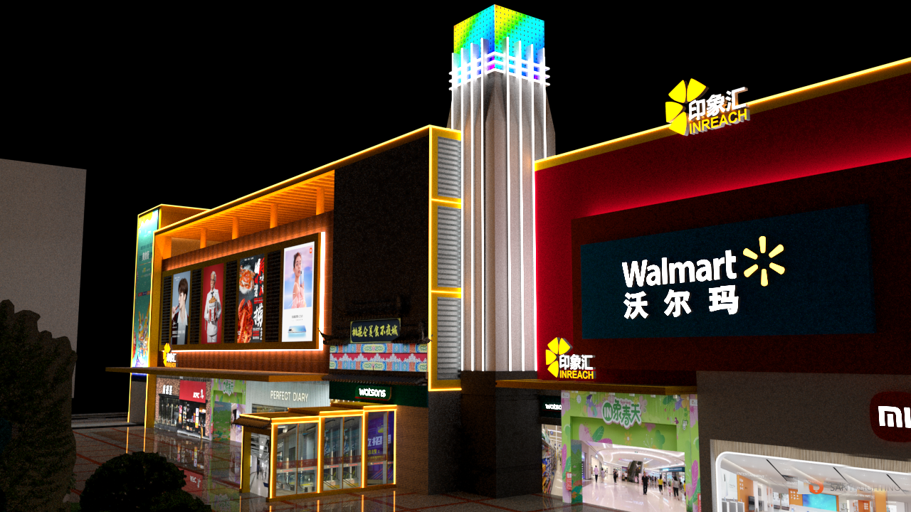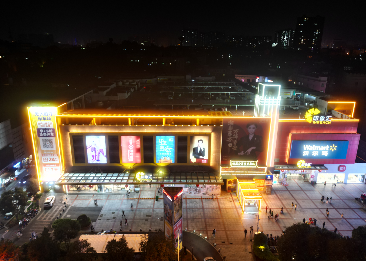 益陽印象匯坐落于赫山區(qū)桃花侖西路 555 號(hào),作為印力集團(tuán)布局湘中的重要商業(yè)載體,這里匯聚了沃爾瑪、海底撈、茶顏悅色等數(shù)十家知名品牌,既是赫山區(qū)商超人氣榜的榜首???,也是承載市民日常消費(fèi)與社交休閑的核心空間。然而,隨著城市夜景美學(xué)的升級(jí)與夜間經(jīng)濟(jì)的發(fā)展,原有外墻燈光逐漸顯現(xiàn)出亮度不均、風(fēng)格單一、能耗偏高的問題,與商圈日益增長的品質(zhì)需求形成反差。