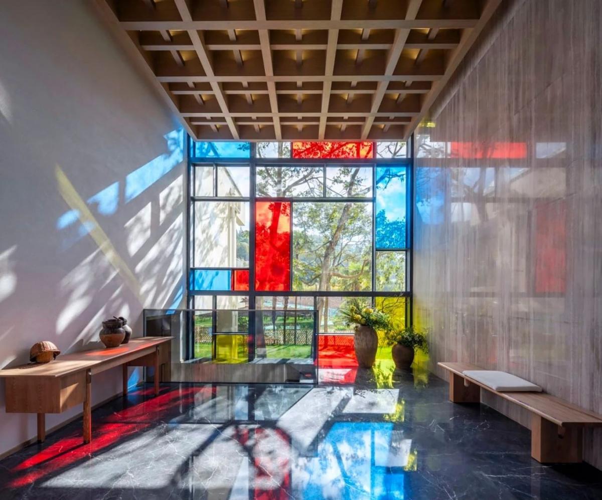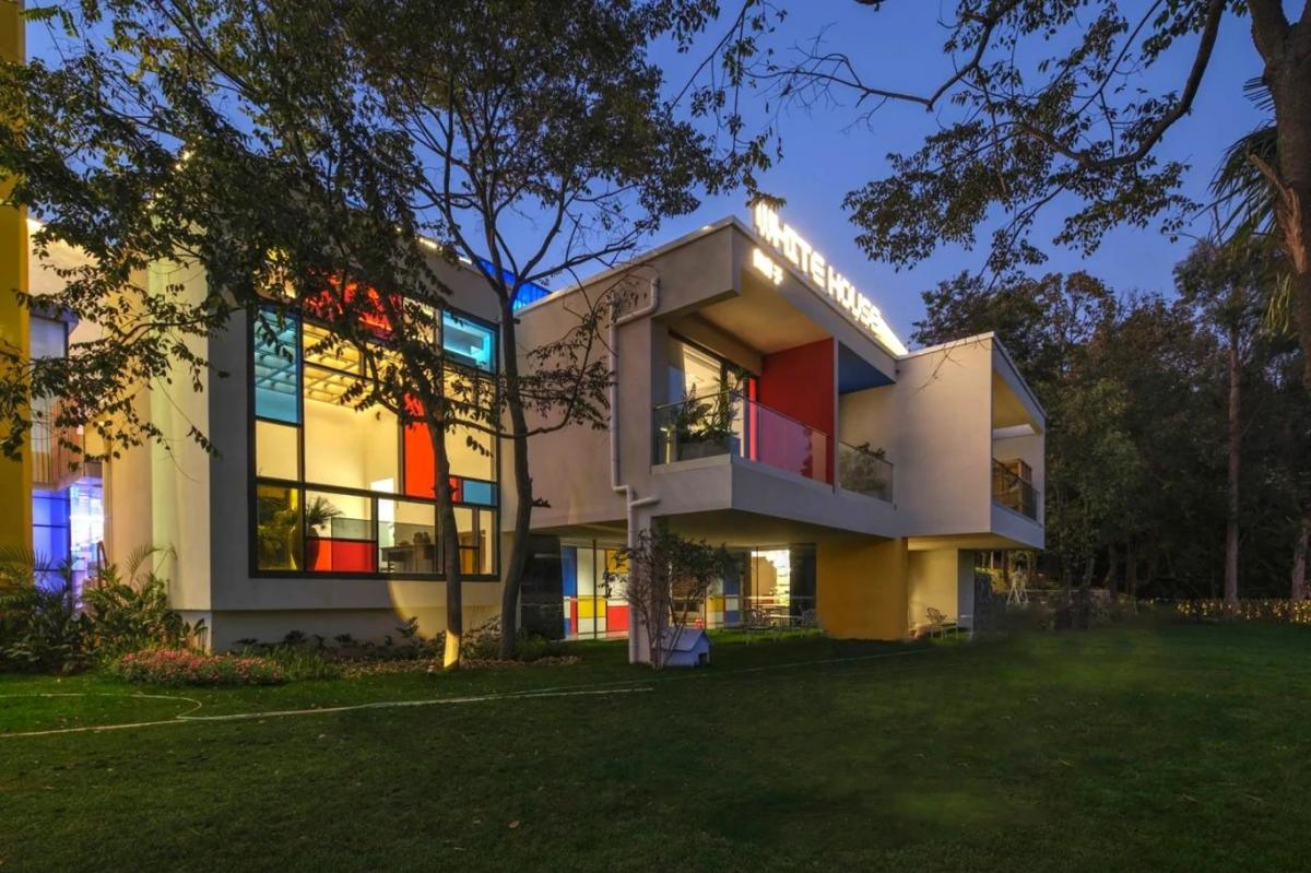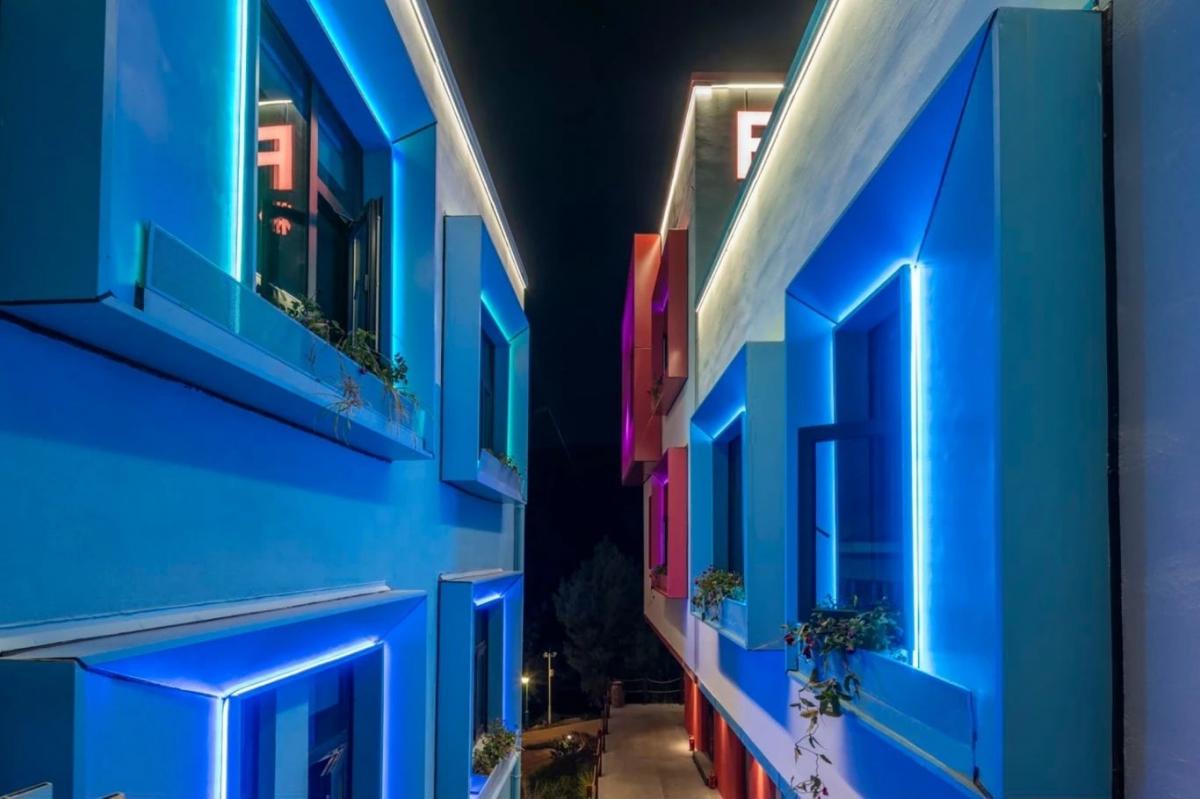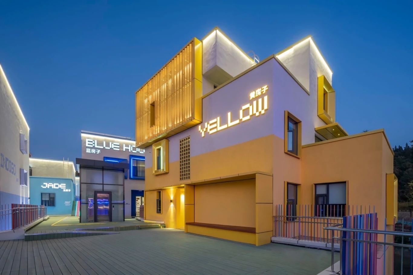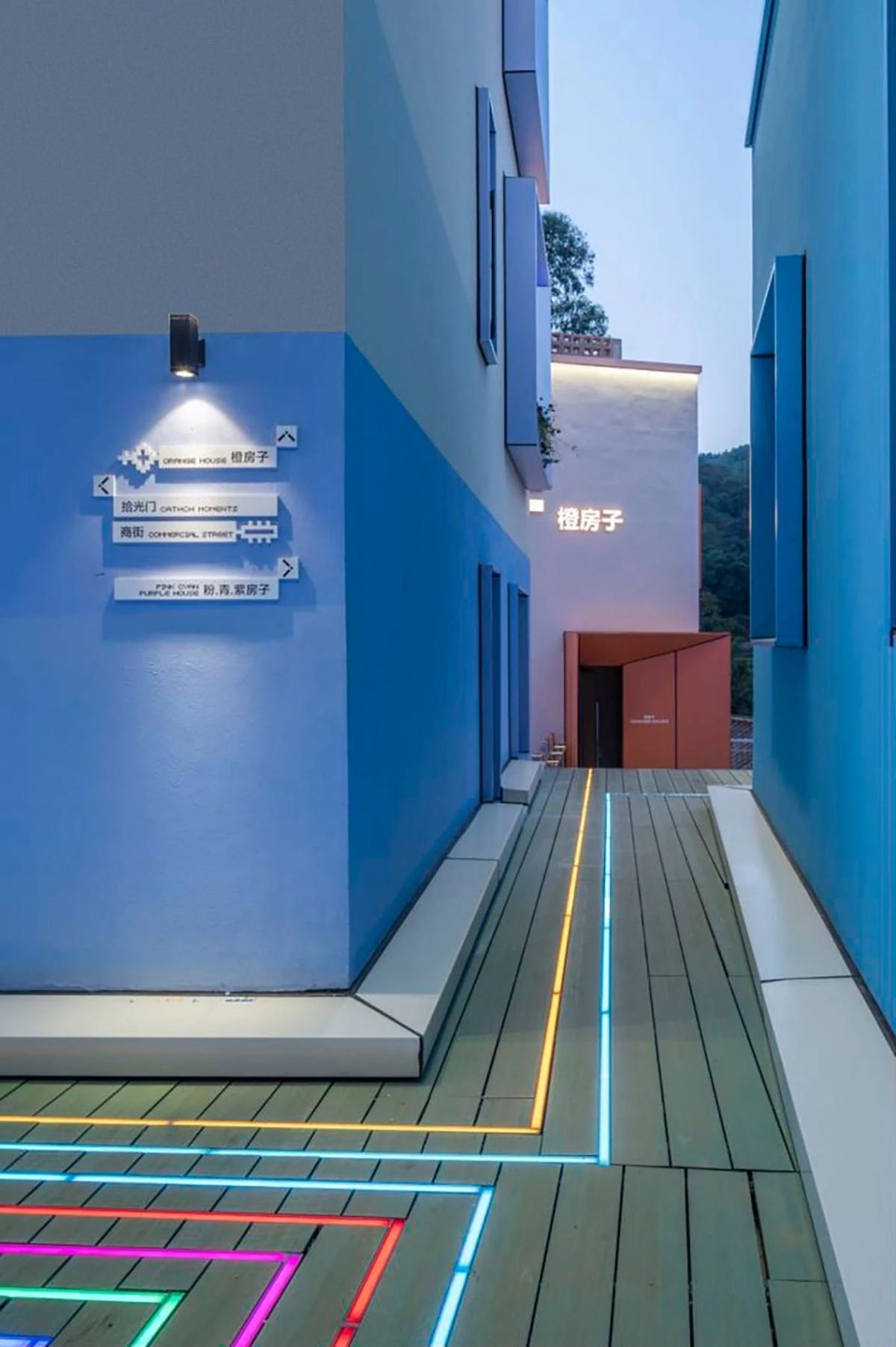 項目位于云南省玉溪市澄江飛大田,建筑師是以七彩的顏色來表現(xiàn),每棟建筑一種顏色,所以他每棟的名字叫做橙房子、藍(lán)房子、青房子等。