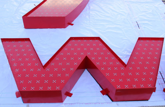 1、鋁板板材能夠熔接,在字體長度上莫得制約,普遍鋁板發(fā)光字都在五六米之上,有些甚至超過十米。