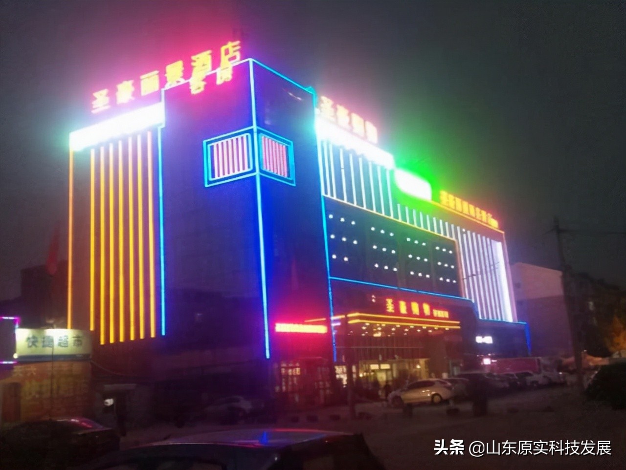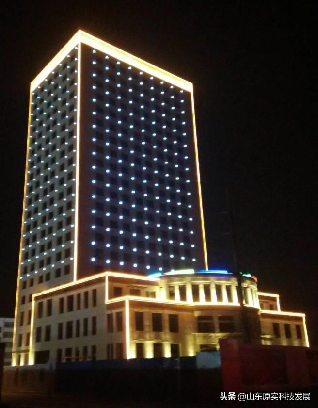 夏津溫泉渡假村樓體鋁板沖孔燈亮化工程