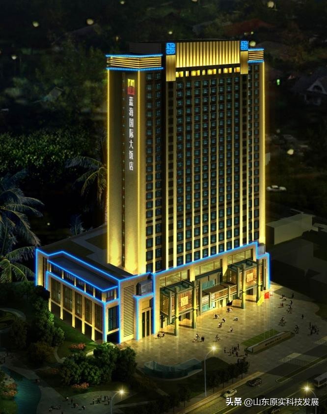 泰安藍(lán)海國(guó)際大飯店樓體鋁板沖孔燈亮化工程